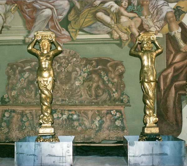 Cariatidi in legno e oro